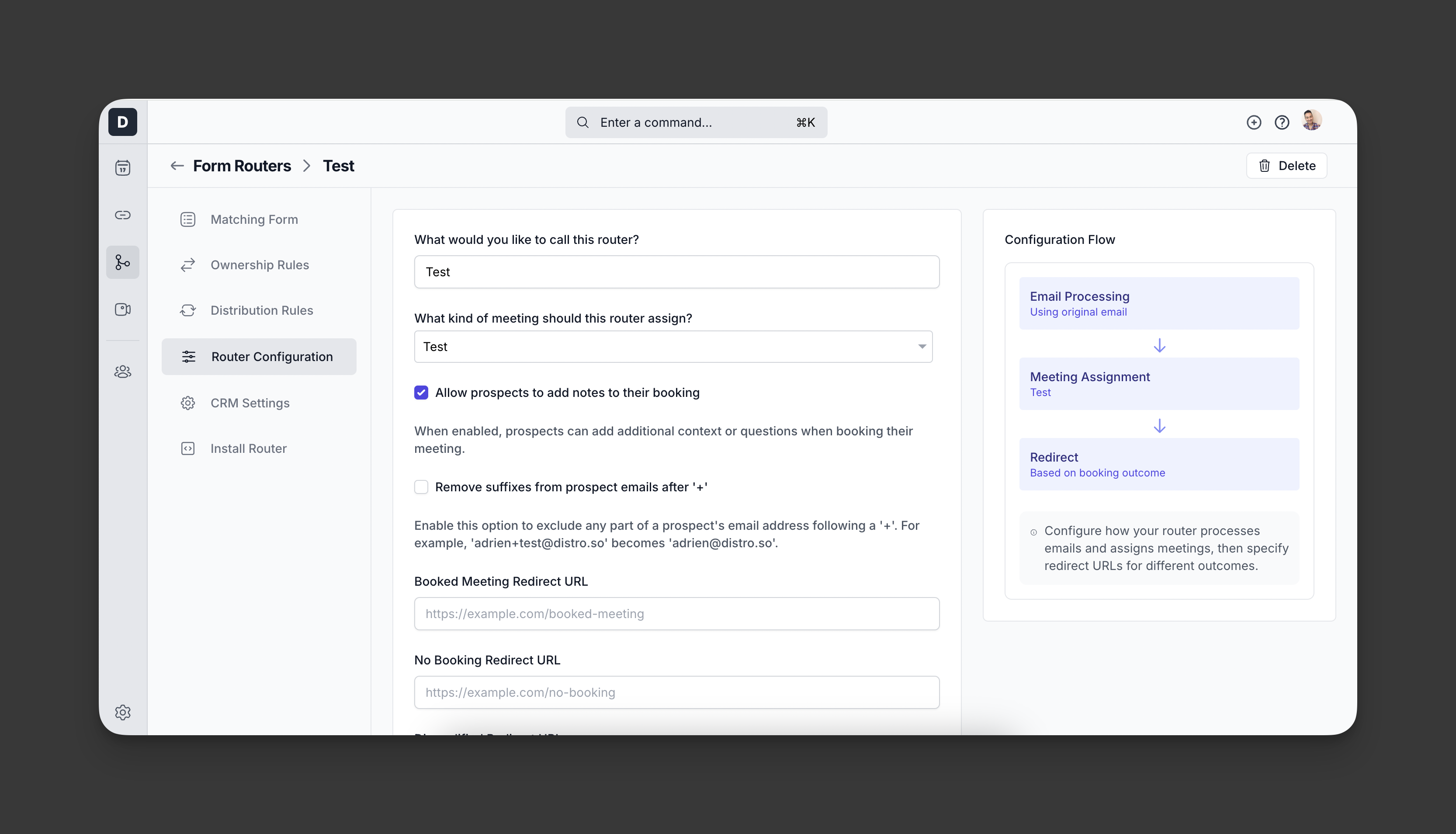[Create a routing form](https://help.distro.so/routing-forms/overview) if you have not done so yet.
